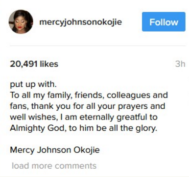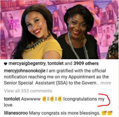Tonto Dikeh ki Mercy Johnson pe ‘oku orire fun ipo titun ti Gomina Kogi sese yan si’. Posted by: ayangalu in Aarin Buzi, Àṣà Oòduà, Iroyin Pajawiri 0 Pages: 1 2 Mercy Johnson 2017-03-15 ayangalu tweet